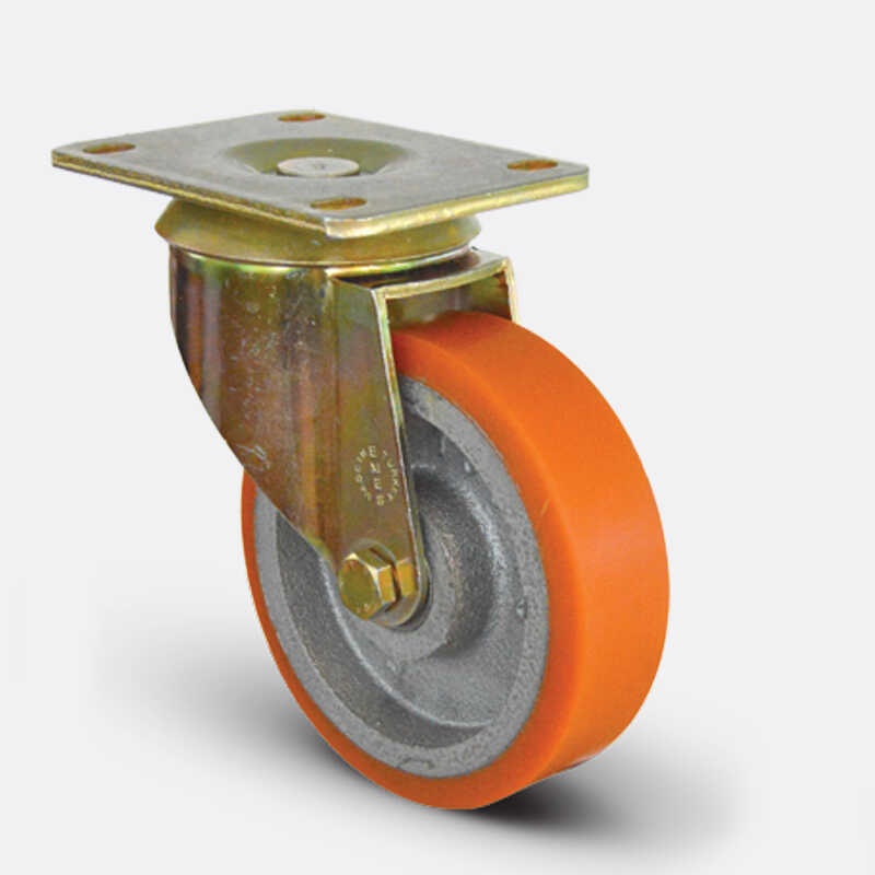 Emes / Eİ01 VBP 80 / 80 mm Çaplı Tablalı Döküm Üzeri Poliüretan Kaplı Rulmanlı Sarı Maşalı Döner Tekerlek