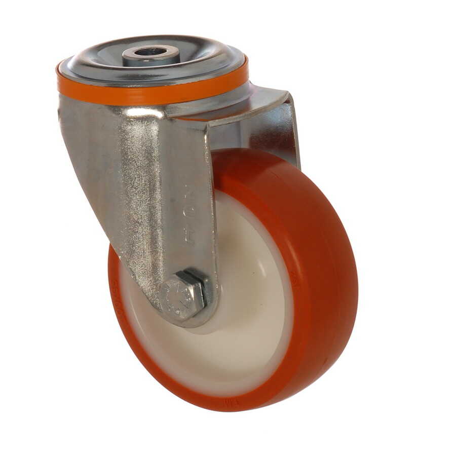 Zet / 3000 PUB 080 / 80 mm Çaplı Delikli Poliamid Üzeri Poliüretan Kaplı Burçlu Döner Tekerlek (Kalın Tip)